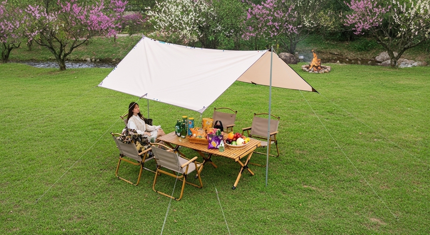 Dựng bàn ghế picnic, bếp nướng, đồ dã ngoại thoải mái.