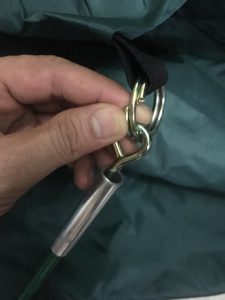 - Bước 1: trải lải lều chính sao cho phần vải có khóa kéo, hay có phần vải mùng lộ lên trên, tìm từ chân lều để nhìn thấy các đường ống vải may sẵn, có thể có thêm móc bấm.