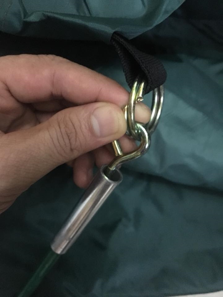 - Bước 3: lần lượt cắm các đầu thanh lều vào chân lều( đã có lỗ để găm, găm vào 1 trong hai lỗ), hoặc có loại lều thì có cái móc để găm vào ống thanh lều. trong quá trình thực hiện thanh xương lều sẽ cong lên tạo thành cái lều.